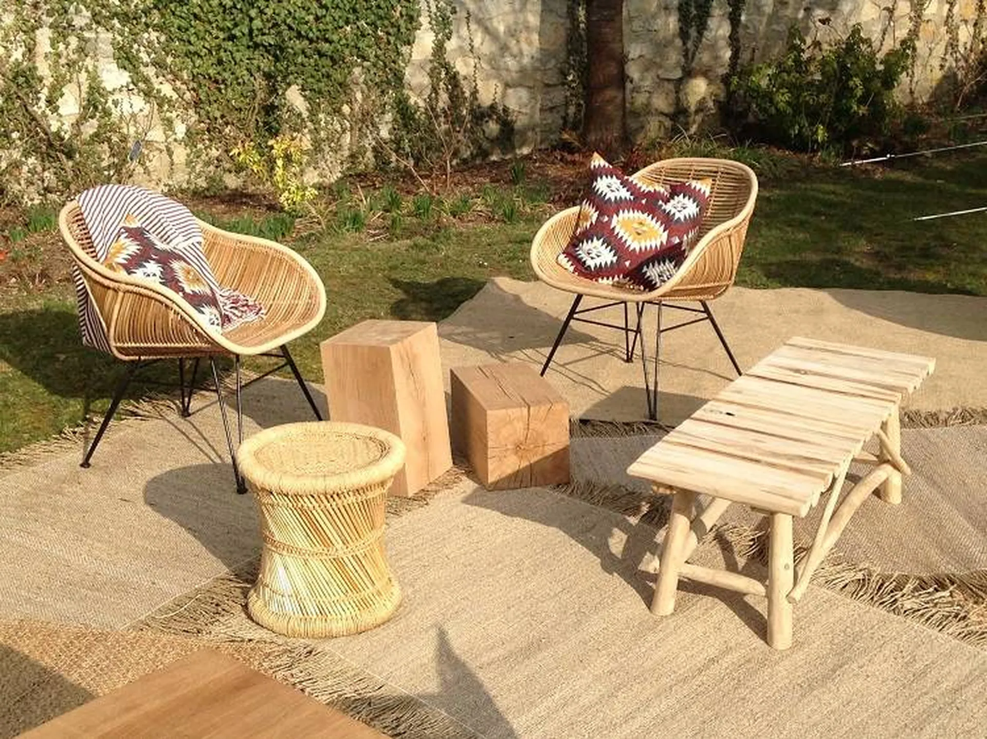 La gamme de mobilier Havane de Carcat Location se compose en plus de fauteuils, poufs, tabourets et tables basses.