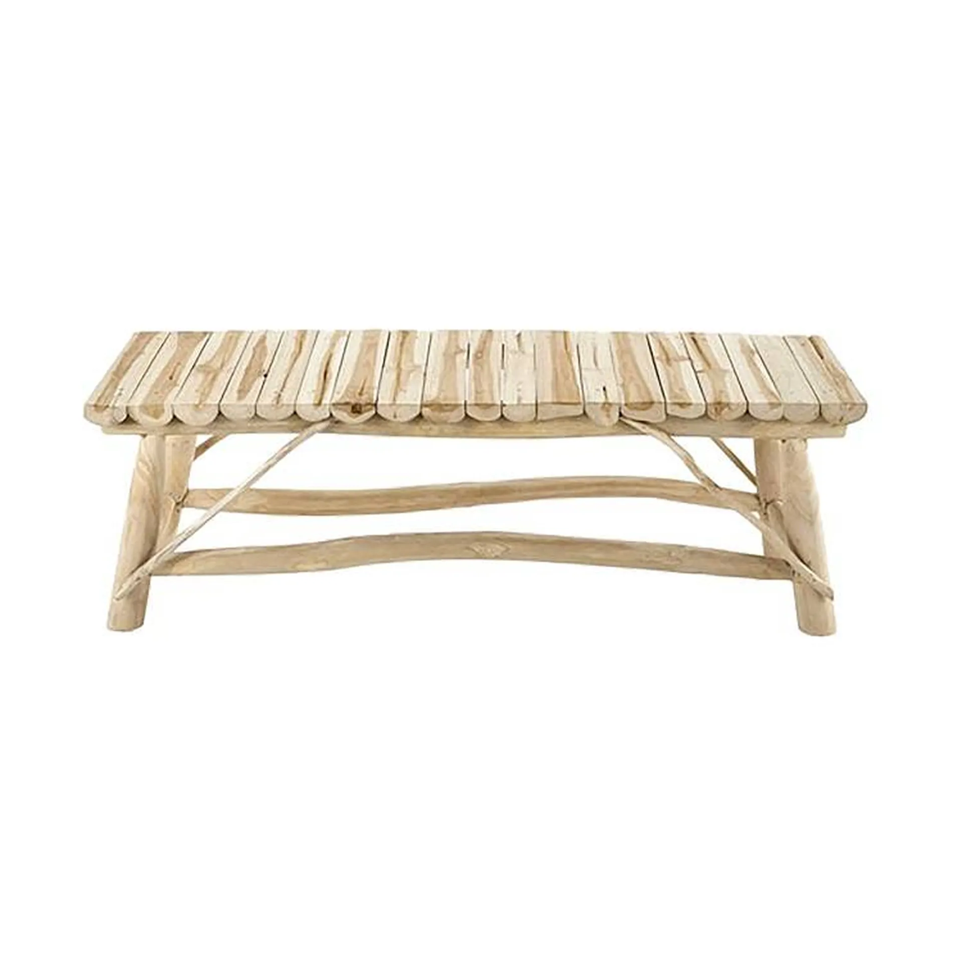 Le banc Havane est un joli banc dont la structure et l'assise sont en teck massif. Le piétement est constitué d'un assemblage de branches et le plateau de l'assise de demi-bûches.