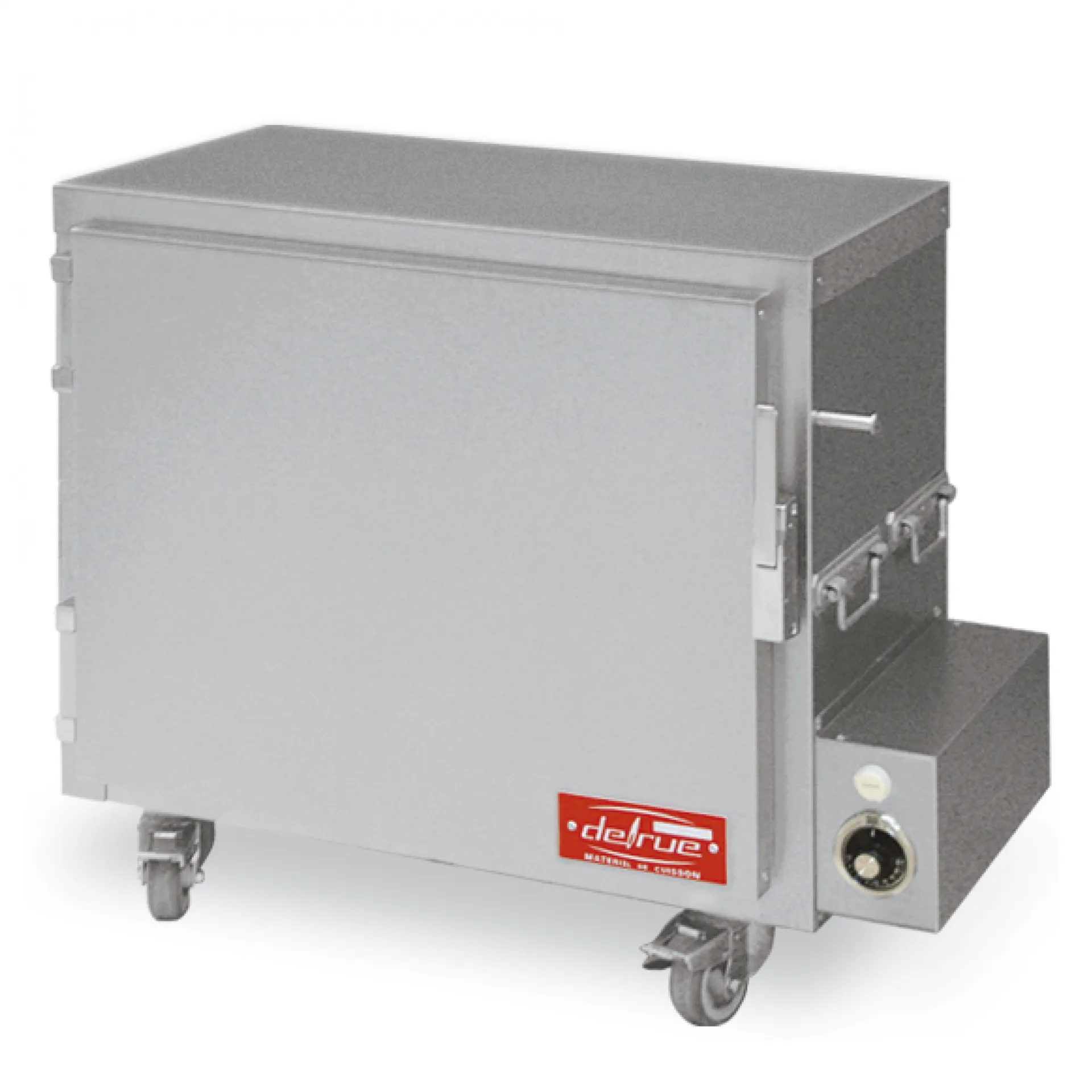 Valeur ajoutée : Très facile à transporter grâce à ces 4 roues, l’avantage principale de cette étuve électrique est qu’elle passe sous une table. L’échelle est amovible avec des glissières en L pour faciliter l’entretien. Son isolation est renforcée. Cette étuve électrique est idéale pour les petites réceptions entre 10 à 30 personnes.