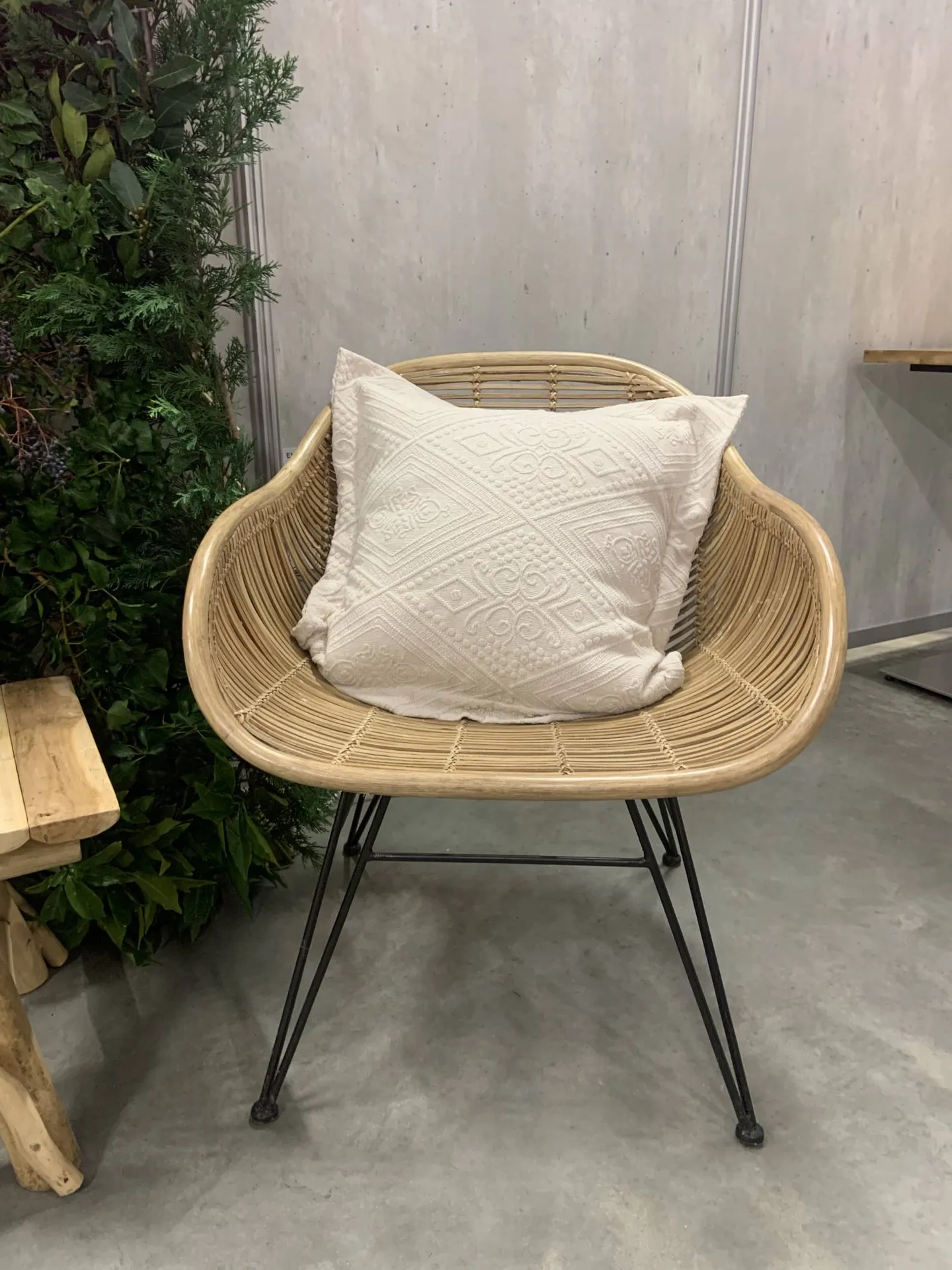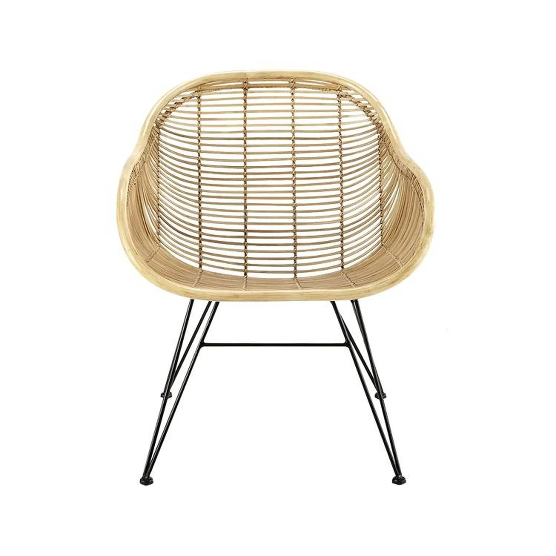 Le fauteuil Havane apporte originalité et authenticité par l'alliance du rotin matière naturelle de son assise et du métal noir de son piétement.