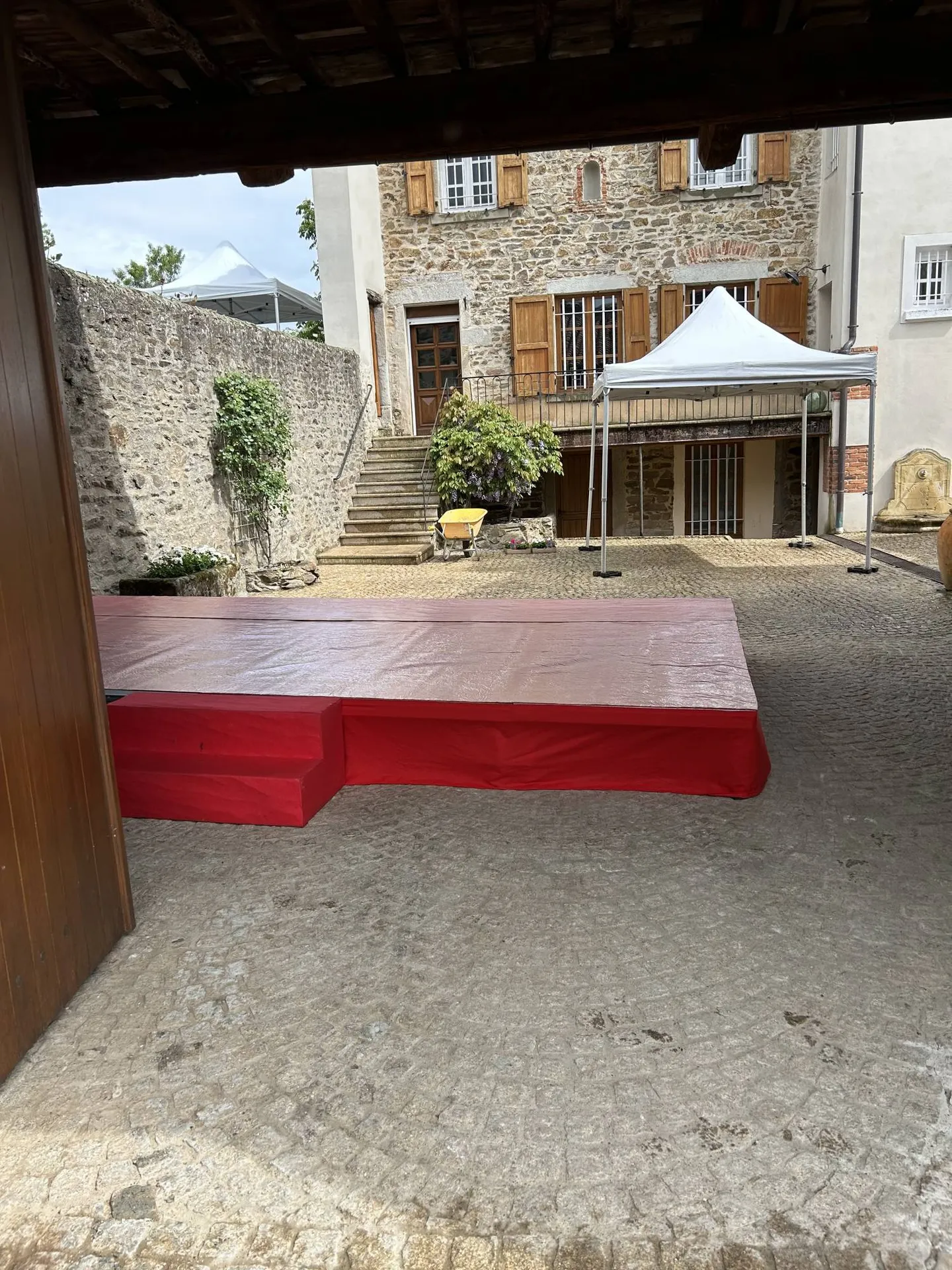 Le juponnage peut être en plissé ou en tendu. Nos clients commandent essentiellement du juponnage pour des discours, cérémonies, remise de prix… Livraison, pose, dépose et reprise par nos équipes Carcat Location.