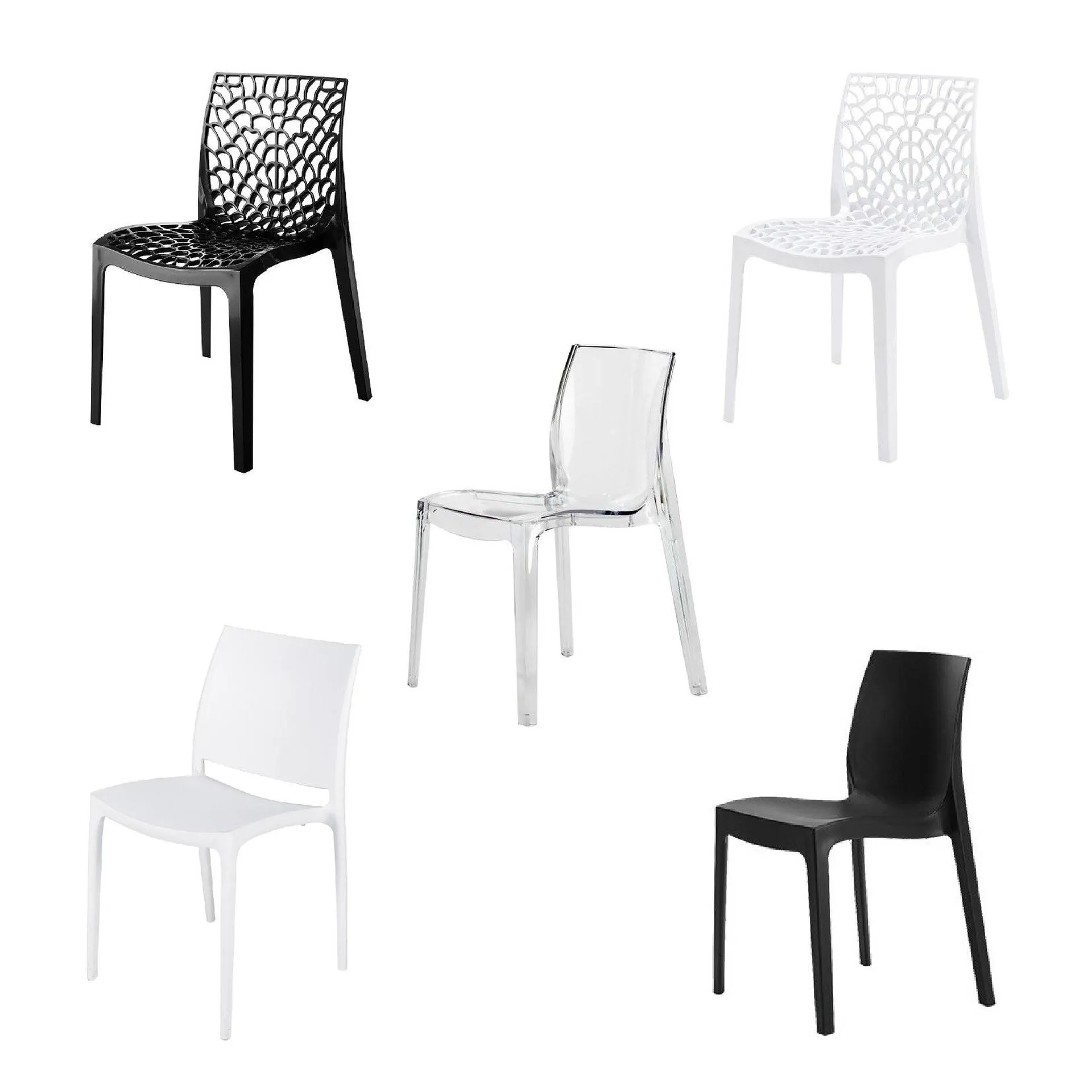Nos chaises design sont en plastique polypropylène ou polycarbonate à la fois légères et résistantes. Leur élégance vient de leur esthétisme moderne avec des dossiers à la forme carrée, de leur couleur noire ou blanche ou transparente cristal, de leur style épuré ou en dentelle comme la série Bruges.