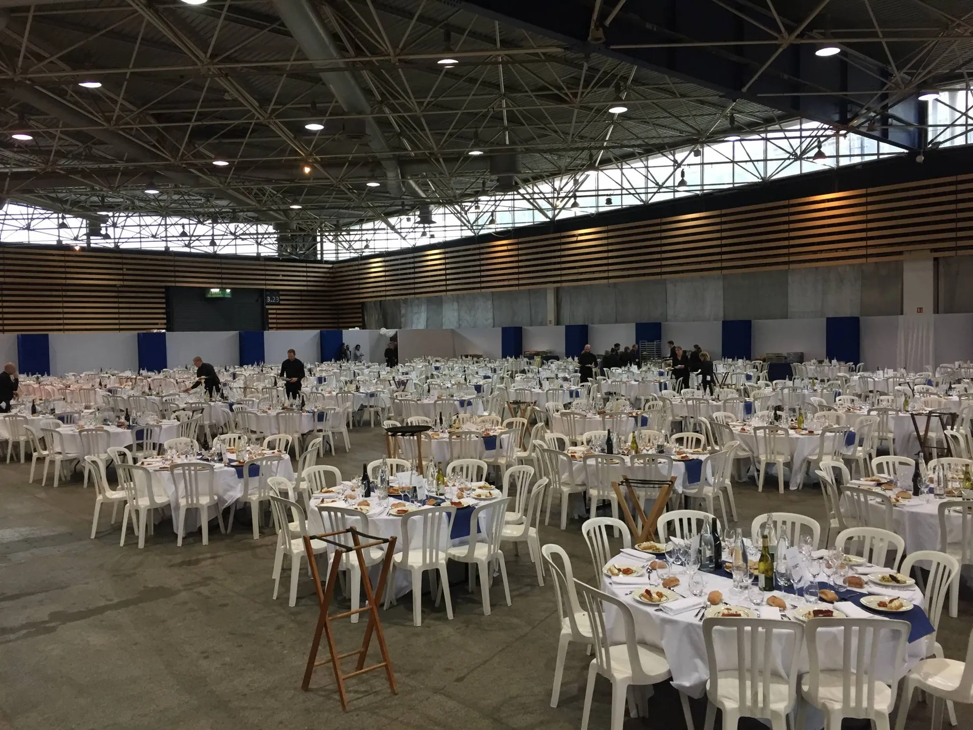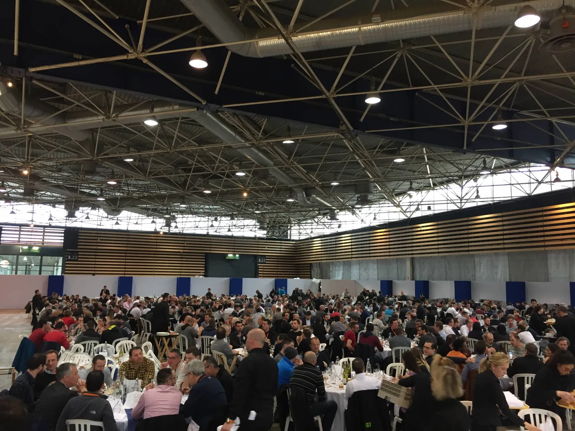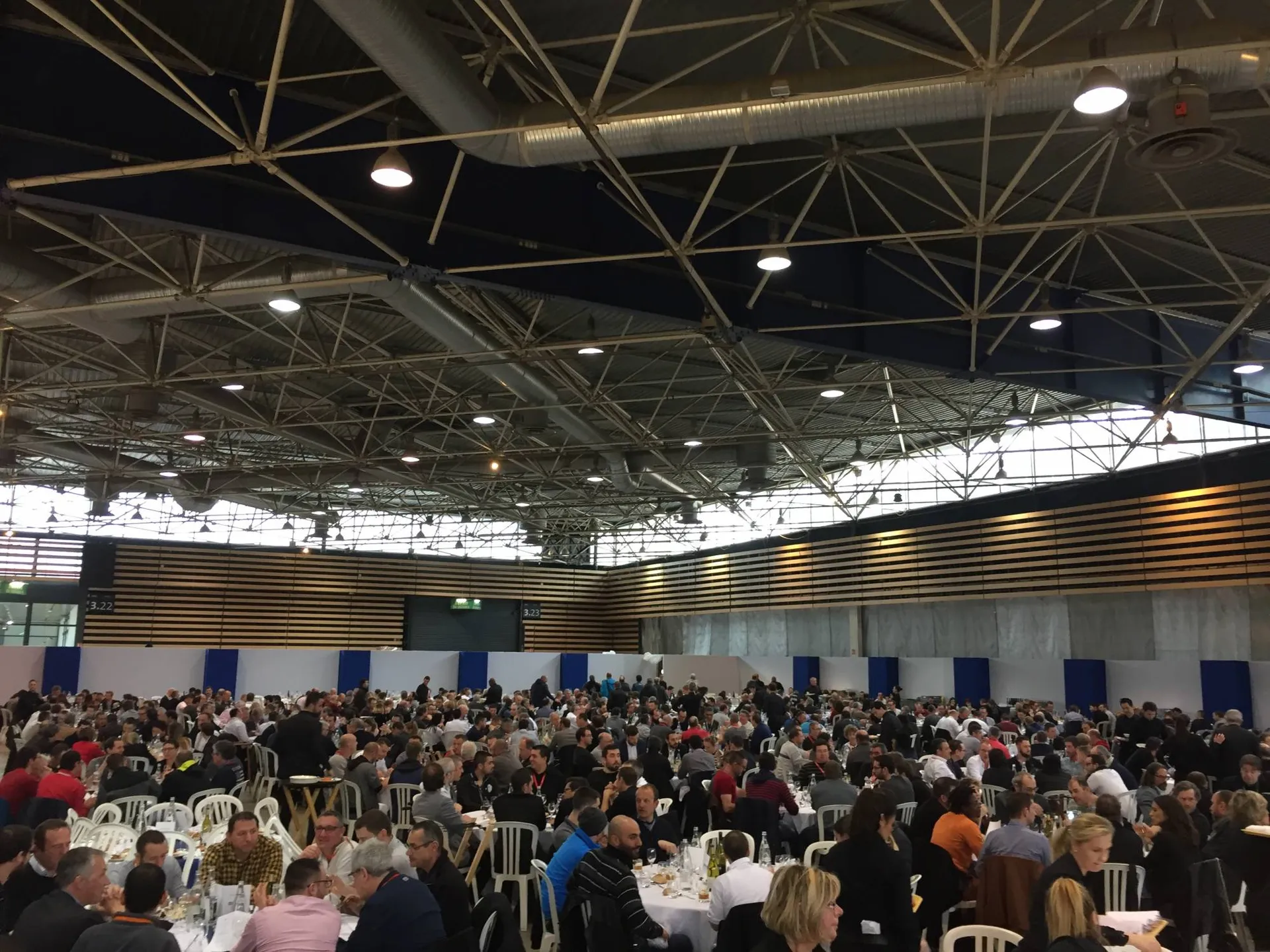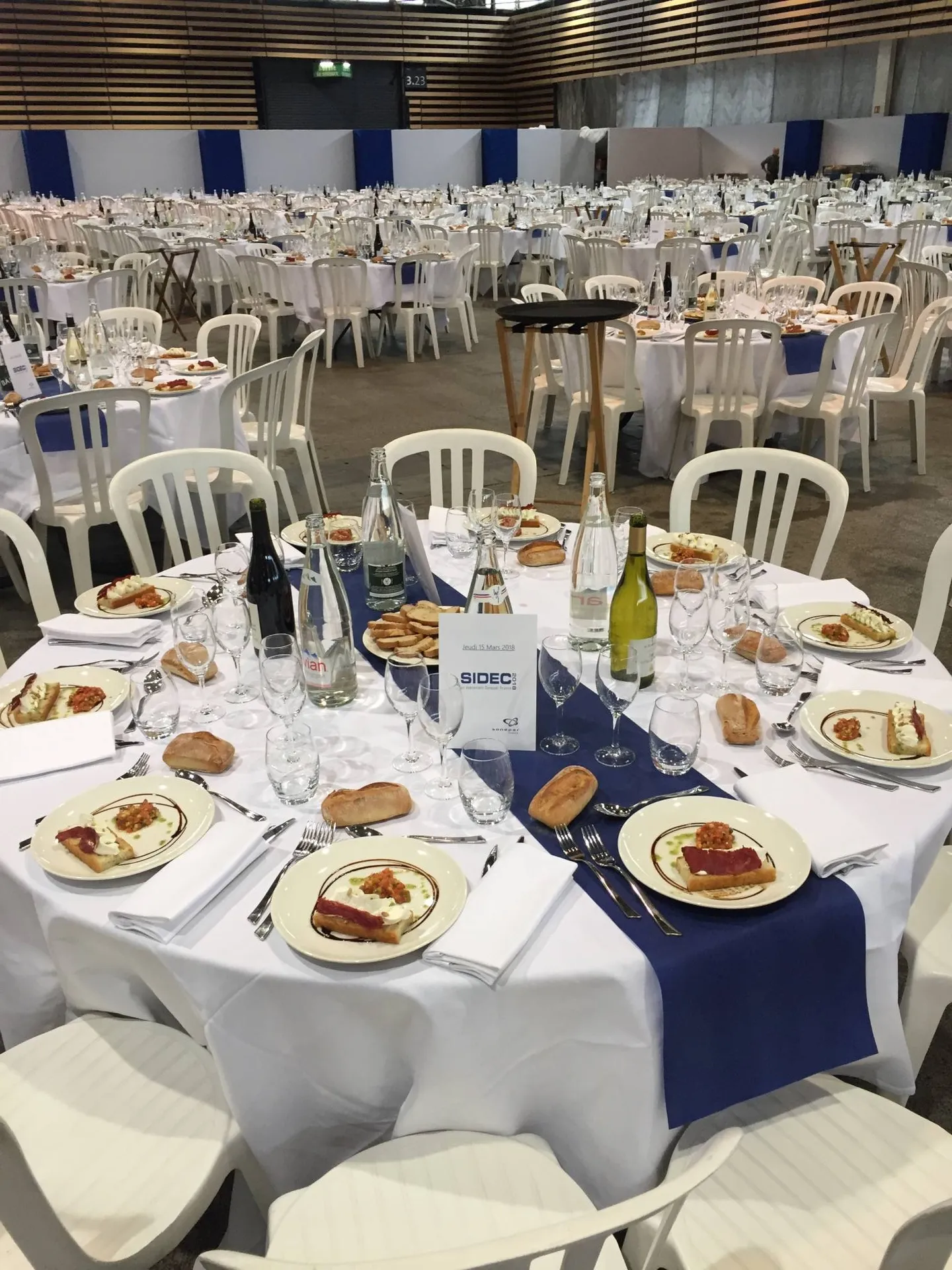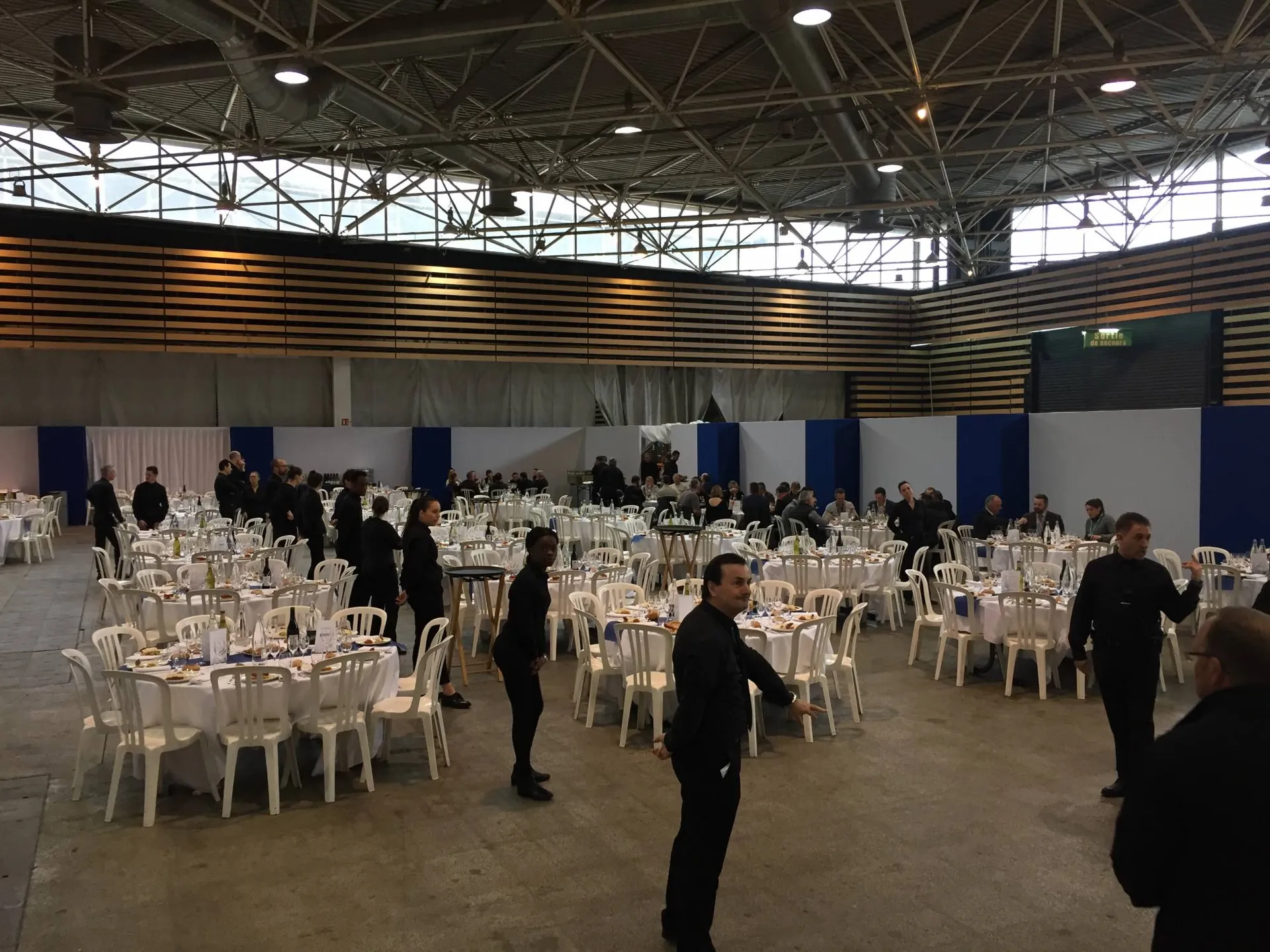 Pour cette occasion, Carcat Location s’est occupé de toute la location et l’installation de l’espace restauration et de l’espace vestiaire. Notre équipe s’est chargée d’installer 100tables rondes, 1000 chaises, 15 mange-debout houssés, 20 portants avec cintres et carnets de vestiaires.