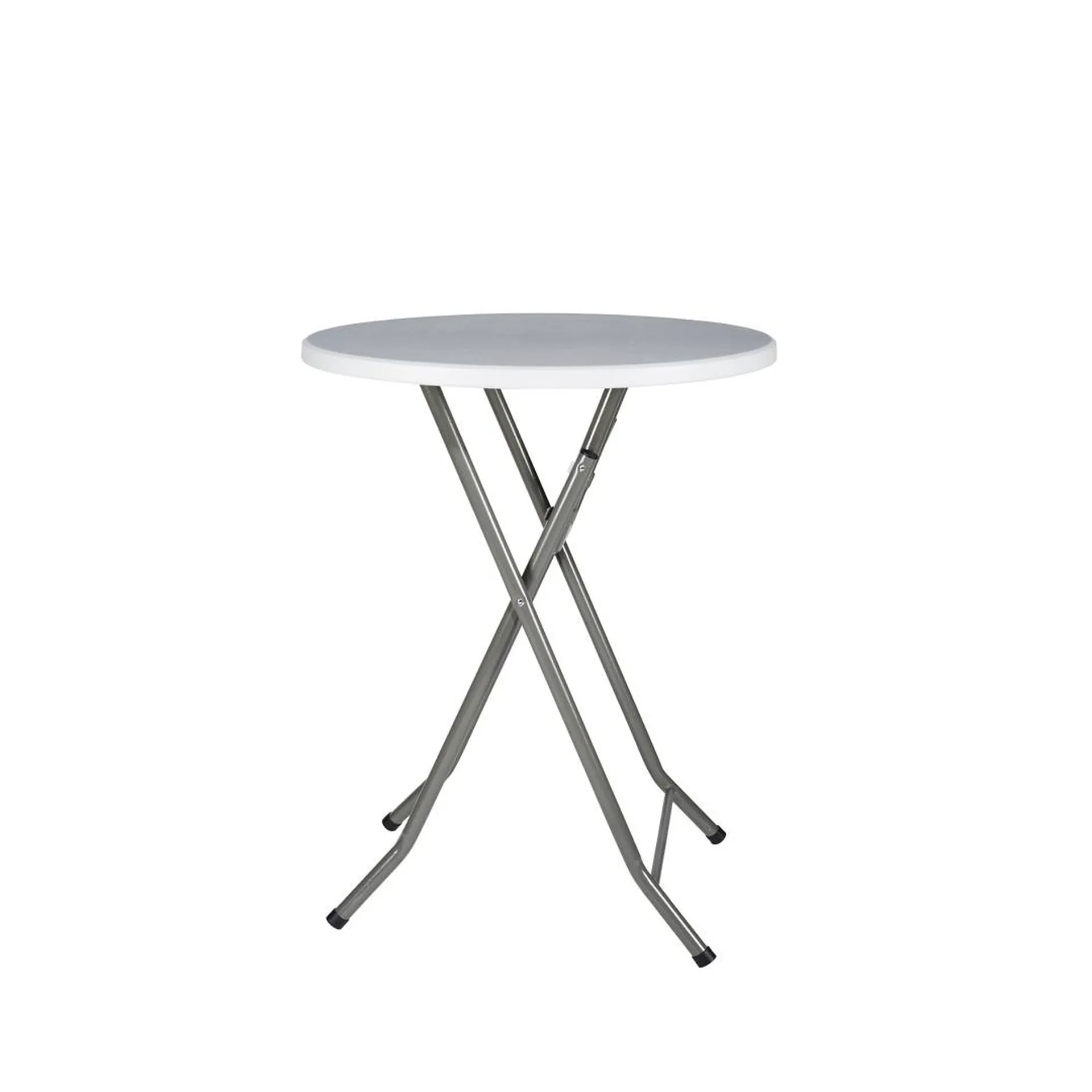 la location un mange-debout de diamètre 84cm et de hauteur 1,08m. Ce mange-debout est résistant et léger. Son plateau est en polyéthylène et ses pieds tubes sont en métal. Le plateau se rabat et les pieds sont pliants (dans la hauteur). Pour plus de chic, pensez à ajouter des