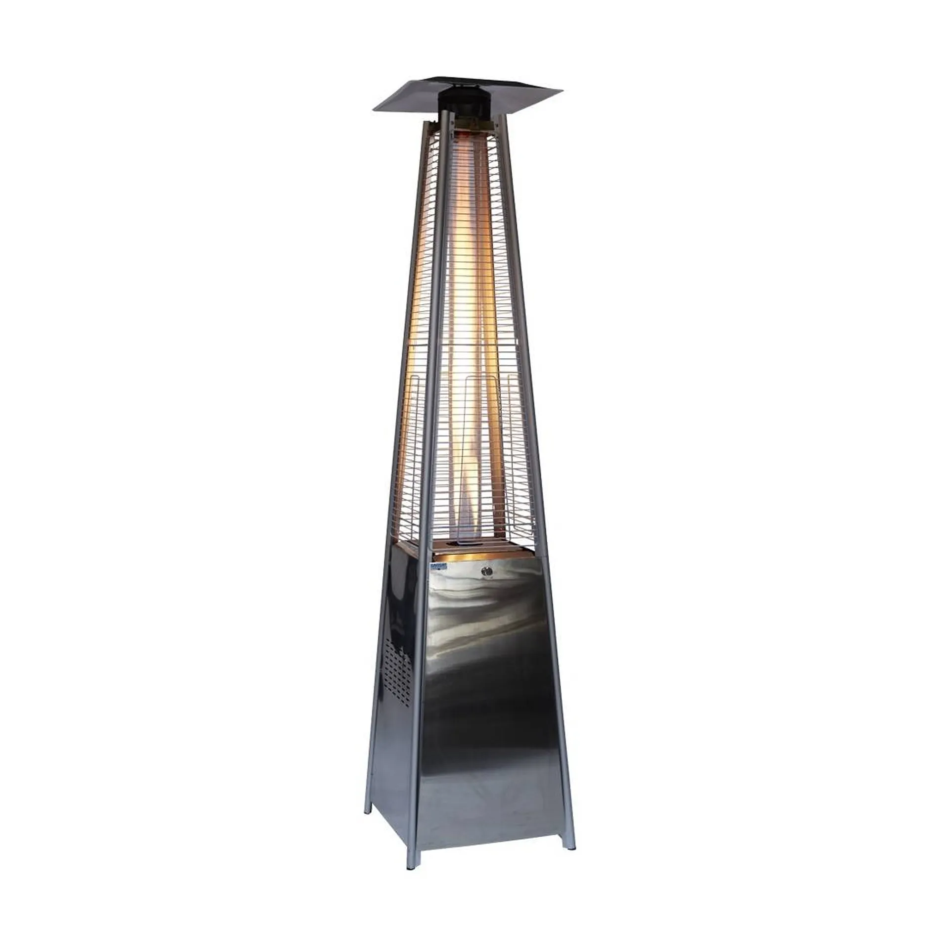 C'est un parasol chauffant en inox très élégant par sa forme de pyramide et par sa flamme lumineuse apparente dans un tube quartz qui apporte une ambiance agréable et une lumière douce à vos zones de réception en extérieur.