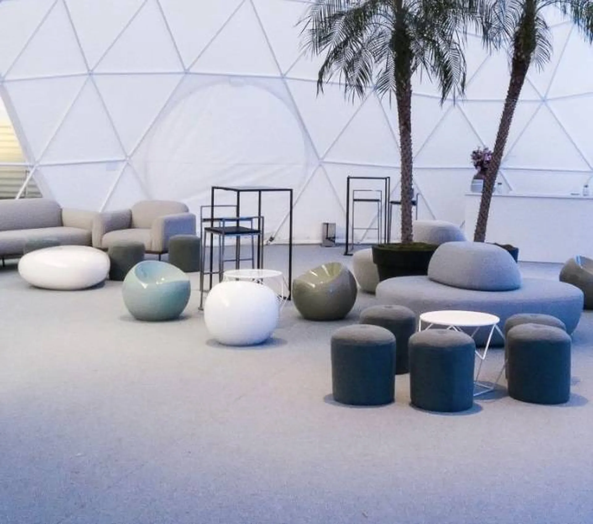 Pour un espace détente stylé et tendance pour vos événements, associez-le à une table basse Prisme et un canapé Acapulco vert : chic et modernité assurés !