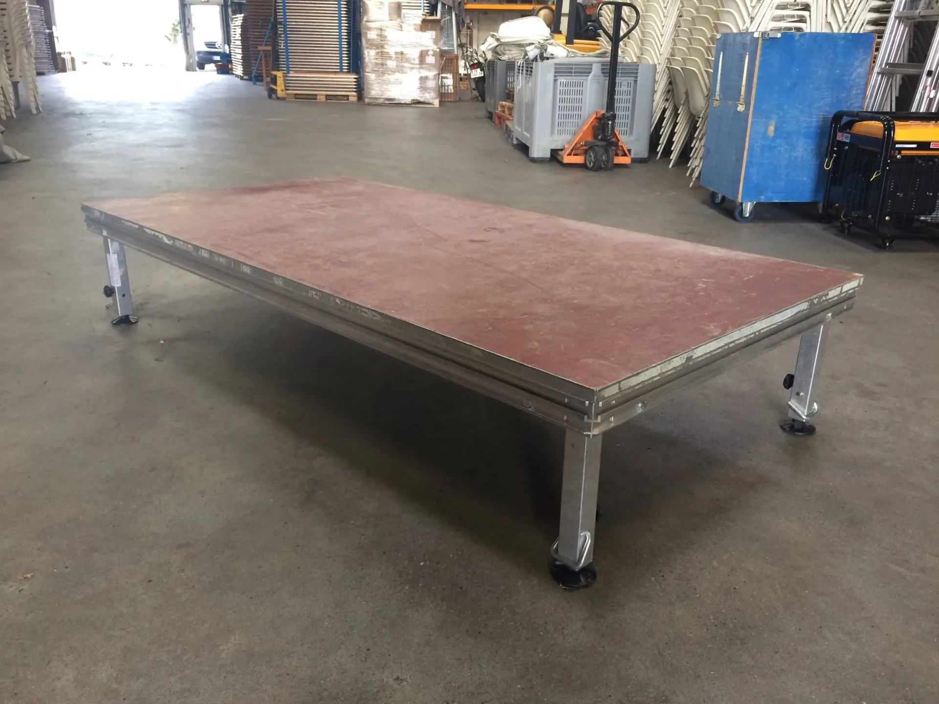 Nous disposons d’un stock important de praticables. Ces panneaux de 2mx1m peuvent être assemblés à volonté pour créer des scènes carrées ou rectangulaires. La hauteur varie de 20cm à 60cm maximum. Ces praticables sont dotés de pieds qui se déplient très facilement. C’est la hauteur des pieds qui va définir la hauteur du praticable.