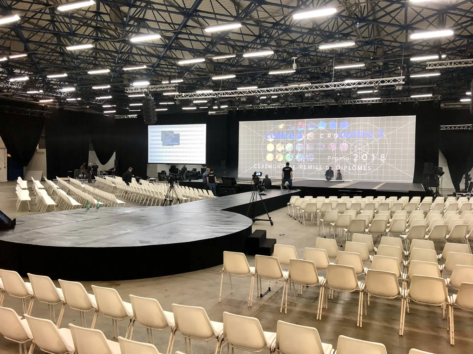 Pour un défilé de mode, une cérémonie de remise de diplômes ou un gala, la scène ronde devient un véritable atout scénique. Associée à un proscenium, elle apporte du mouvement et de la profondeur à votre mise en scène.
