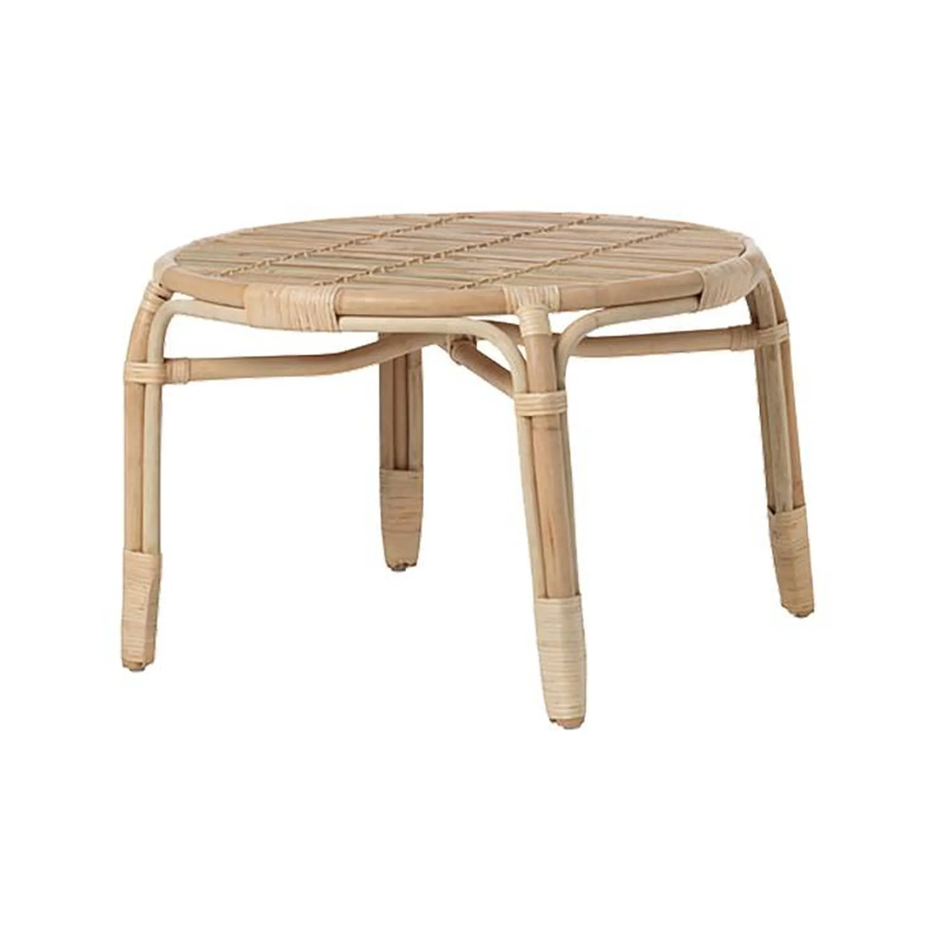 Sa structure est en rotin à la finition naturelle et son plateau en lames de bambou. Ses courbes sont douces et arrondies, c'est une table basse légère et facile à déplacer.