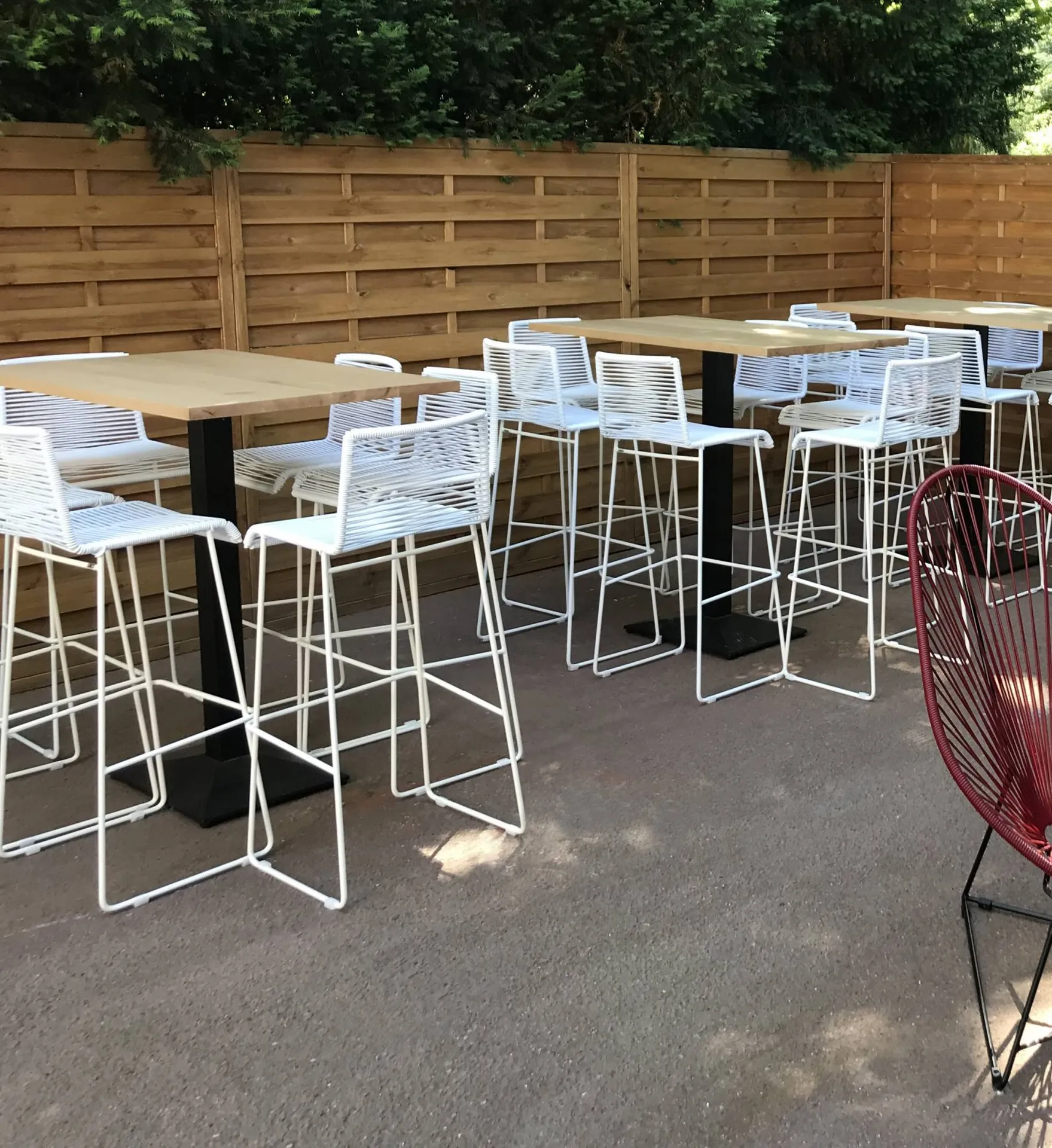 Ce modèle est également disponible en piètement noir et cordage blanc. Pour une ambiance totalement vintage et originale, louez également nos canapés et fauteuils de la gamme Acapulco.