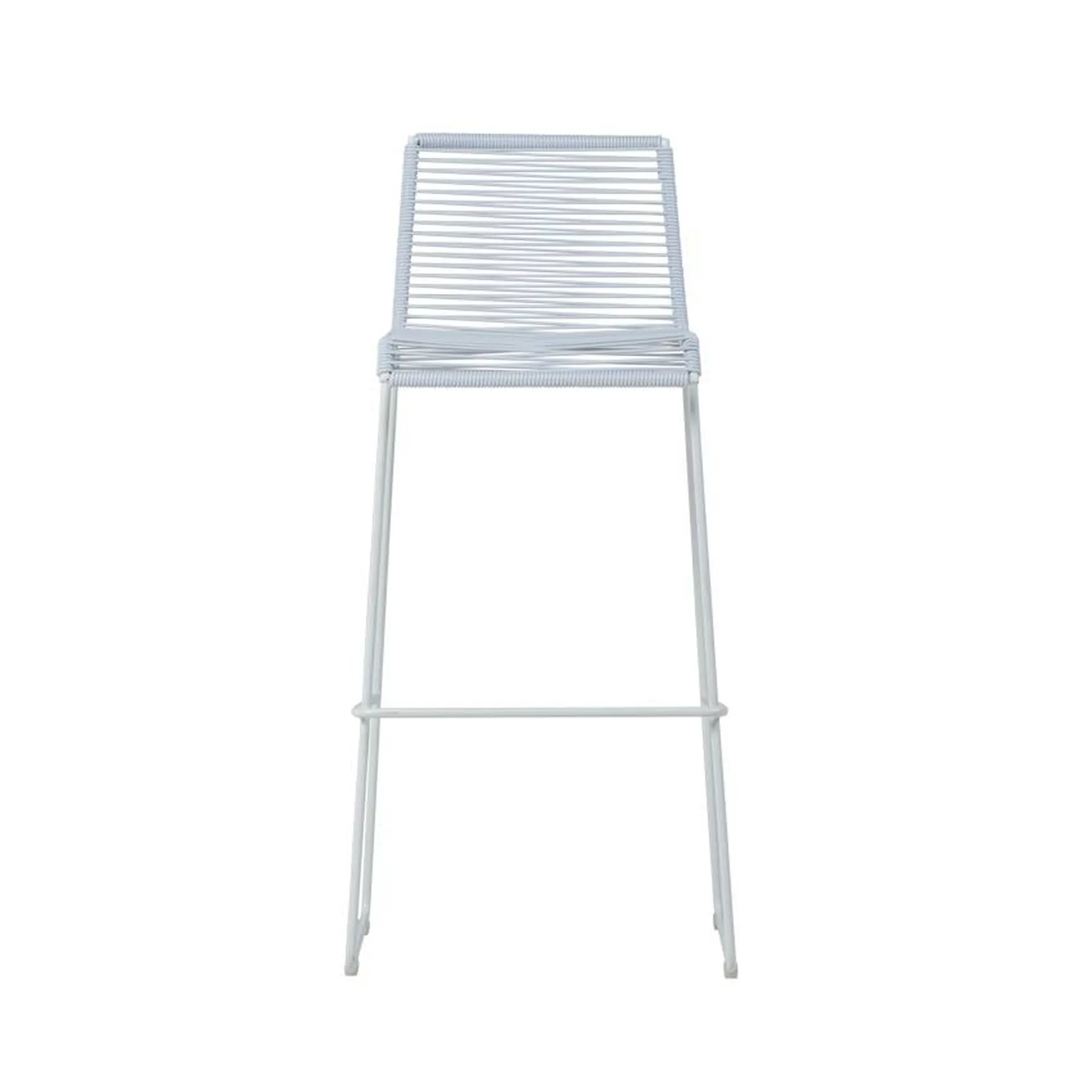 Sa structure est en acier époxy blanc et son cordage blanc en PVC plastique haute résistance à mémoire de forme ce qui en fait un tabouret haut très confortable et s'adaptant à toutes les morphologies.