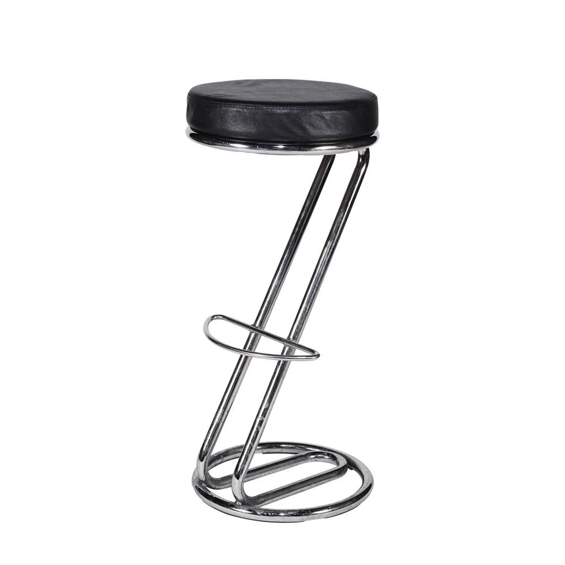 Carcat Location vous propose un tabouret haut de couleur noire. Ce tabouret de bar en « Z » est monté sur une structure en tube chromé. Contemporain et design, son assise ronde en simili cuir noir est rembourrée. L’assise est très confortable.