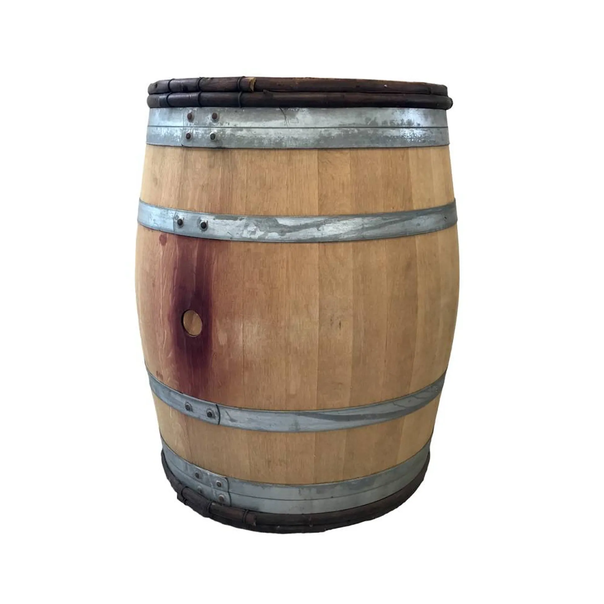 Arrivés tout droit de Côte d'Or et fabriqués dans les règles de l'art chez un tonnelier bourguignon. Ce sont de véritables tonneaux de vin qui ont précédemment été utilisés par des vignerons pour de grands crus comme le Côte de Nuits ou le Gevrey-Chambertin. Ils sont en bois de chêne français et cerclés de métal. Authenticité garantie !